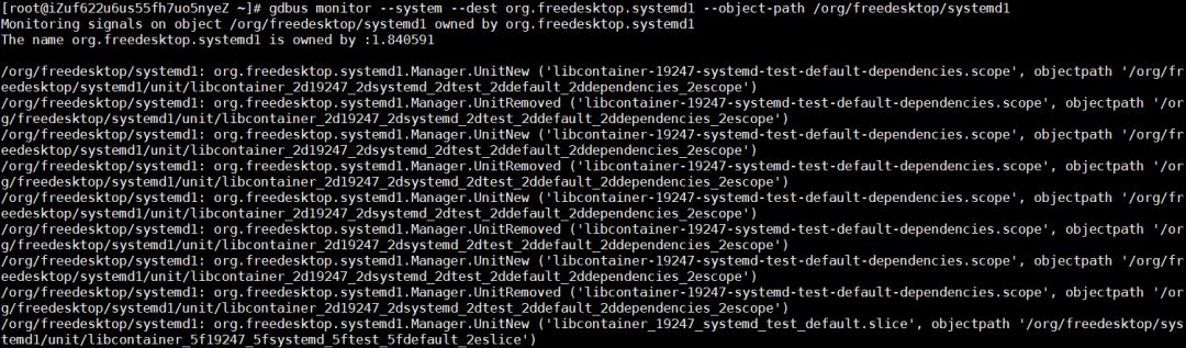 使用下边的命令,观察 org.freedesktop.systemd1 上接受到的所以请求,可以看到,在正常系统里,有大量 Unit 创建删除的消息,但是有问题的系统里,这个 bus 上完全没有任何消息。