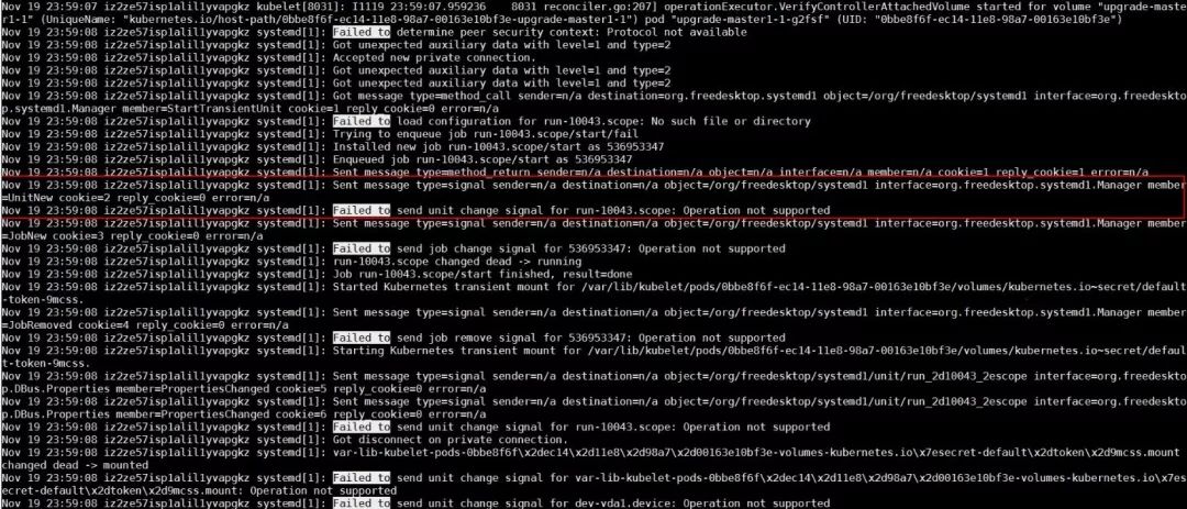 另外,我使用 systemd-analyze 命令,打开了 systemd 的调试级别日志,发现 systemd 有 Operation not supported 的报错。