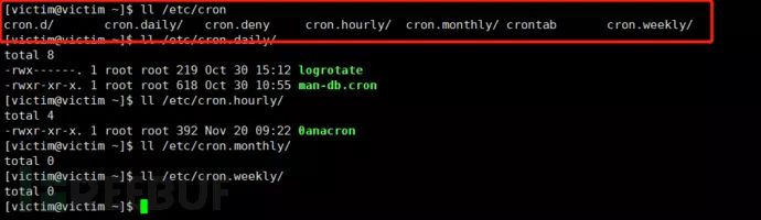 4)查看/etc/cron.daily/ /etc/cron.weekly/ /etc/cron.hourly/ /etc/cron.monthly/ 这些文件夹下面是否存在定时任务