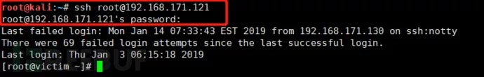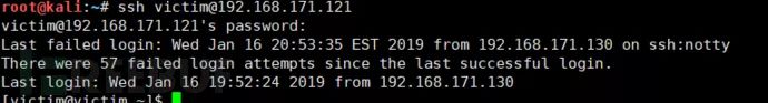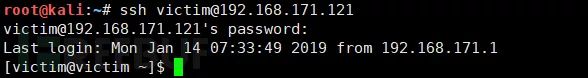 ssh victim@192.168.171.121 输入密码后正常登陆: