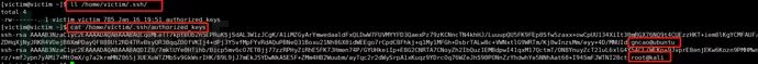 因为从日志和wtmp记录中我们看到攻击者已经登陆了victim和root账户所以我们需要在这两个账户下面分别查看是否存在ssh公钥信息。