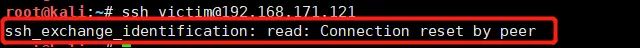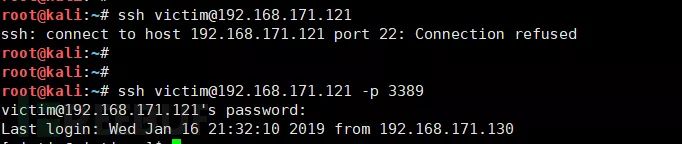 4.4)重启sshd服务然后尝试用22端口连接victim主机发现是无法连接的使用3389端口是可以的