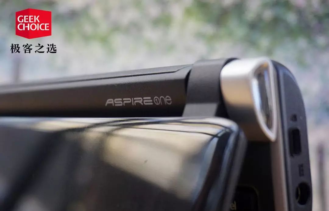 在 A 面的转轴处还能看到「Aspire One」的字样,这个设计让屏幕打开后依旧能看到英文 logo。后期产品也让这个系列 logo 在设计元素上更加明显,比如 A 面中间的印上「Aspire One」的超大字体,足以见得宏碁这个系列的上网本在当时有多受欢迎。