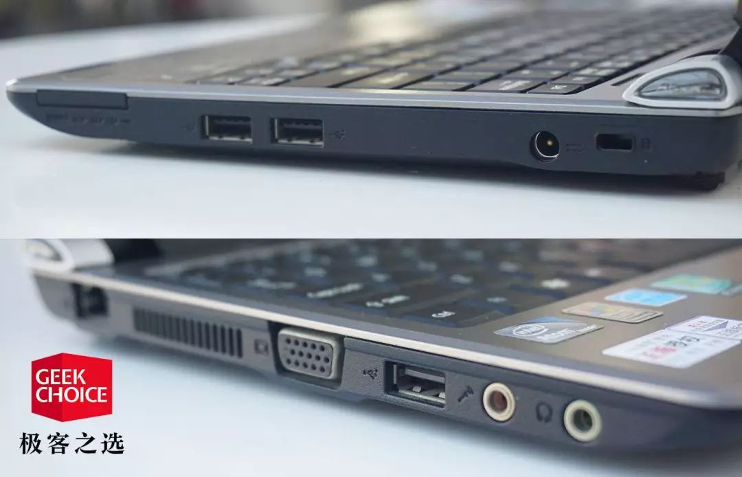 另一方面,上网本的扩展接口一般都是相对完整的,就拿这台宏碁 Asipire One D250 举例,机身左侧拥有网线接口、VGA 视频接口、USB 接口以及耳机、麦克风的接口。机身右侧则是锁孔、电源接口、两个 USB 接口和读卡器,可以说上网本提供了必要的扩展接口,也满足了大多数人的使用需求。