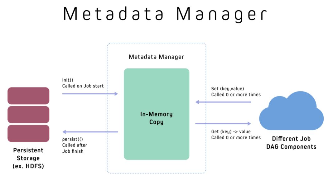 所有 Marmaray 作业都需要一个持久存储(我们称之为 Metadata Manager)来缓存作业的元数据信息。作业可以在执行期间更新状态,并在作业执行成功后替换旧状态,否则将无法修改状态。在 Uber,我们使用 Metadata Manager 存储检查点信息(或 Kafka 的分区偏移量)、平均记录大小和平均消息数等元数据。元数据存储是通用的,可以存储任何相关的度量指标,这些度量指标可用于根据用例和用户需求跟踪、描述或收集作业的状态。
