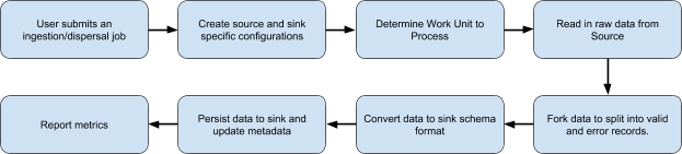 无论源数据存储是什么,单一摄取管道都将执行相同的有向非循环图作业(DAG)。在运行时,摄取行为将根据特定源(类似于策略设计模式)而有所变化,以协调摄取过程,并使用一种通用的灵活配置来适应未来不同的需求和用例。
