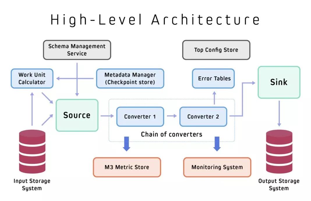 摄取和分散作业主要对来自数据源的记录执行转换,以确保在将数据写入目标接收器之前具备所需格式。Marmaray 将多个转换器链接在一起执行多次转换,并且可以写入多个接收器。