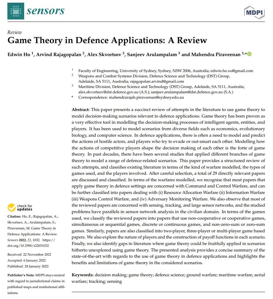 悉尼大学与澳大利亚国防科技最新《博弈论在国防中的应用综述》,值得关注!