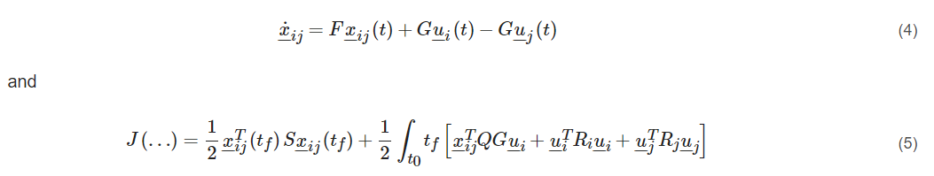 Faruqi [89] 讨论了将微分博弈论应用于导弹制导的一般问题。他们指出,导弹轨迹遵循比例导航 (PN),这是一种通常用于制导导弹的制导法则。这些系统的性能通过线性系统二次性能指数 (LQPI) 来衡量。关于微分博弈论,他们通过用一组微分方程表示导弹导航和轨迹来模拟导弹制导问题。这个问题的一般形式是