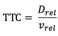 TTC(time to collision)碰撞发生时间,是衡量碰撞预警效果的重要指标,计算方式如下: