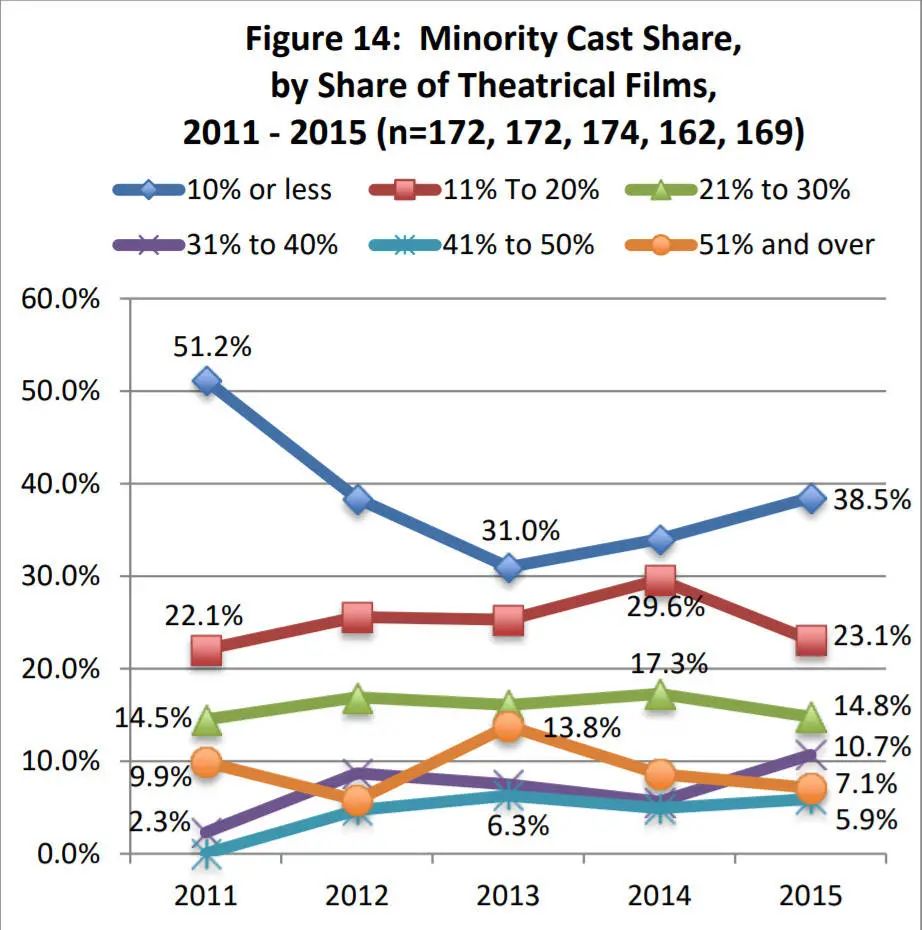 少数族群演员在电影阵容中的比重变化趋势