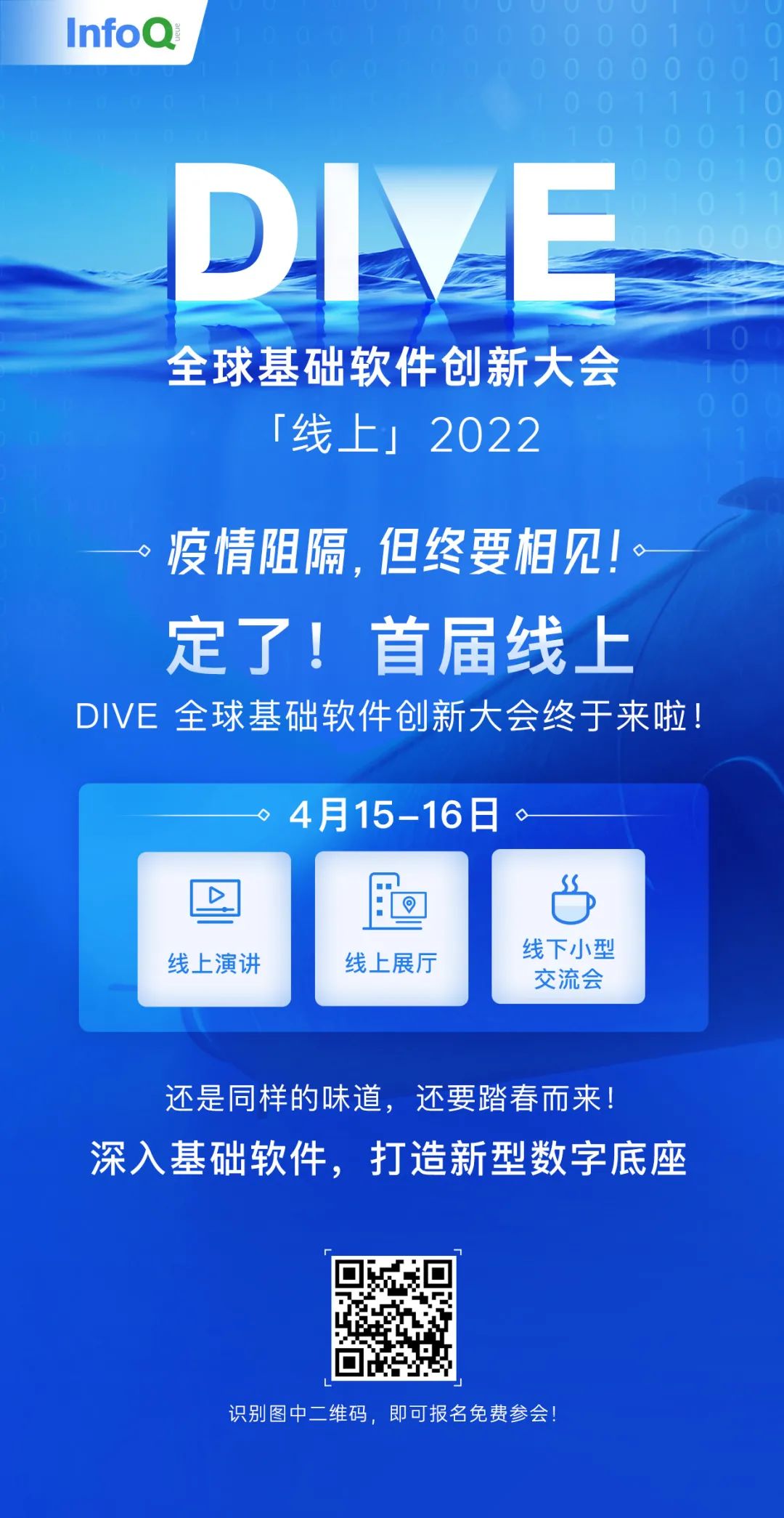 出于疫情防控考虑,DIVE 全球基础软件创新大会最终改为线上形式,同时改期至 4 月 15、16 日举行。