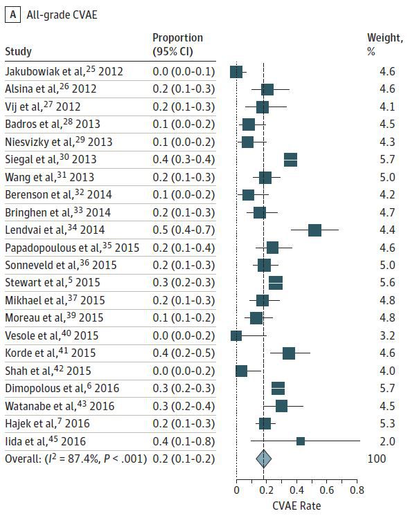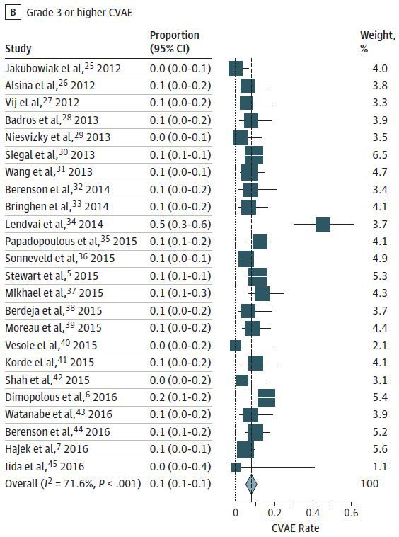 Carfilzomib-Associated Cardiovascular Adverse Events: A Systematic Review and Meta-analysis.JAMA Oncol. 2018 Mar 8;4(3):e174519. doi: 10.1001/jamaoncol.2017.4519.