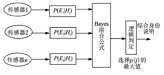 ④Bayes推理:指在给出前面对假设的似然估计和增加证据/观测情况下更新假设似然函数,给出证据条件下假设的后验概率。该方法特点是假设需相容,备选假设需具有完备定义。Bayes融合过程如图2所示。