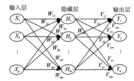 ⑥神经网络技术:指模仿生物神经系统的过程,其识别成功率依赖训练神经网络模型的最佳加权矩阵和训练数据等,误差反传(BP)神经网络模型如图3。神经网络算法可应用于线性和非线性环境,通常由输入层、隐藏层和输出层3部分组成,每层均包含若干个神经元,数据向量从网络左边输入,神经网络完成非线性变换,在网络右侧输出。该变换能产生从数据到聚类分析技术形成的身份类别的变换,神经网络可将多传感器数据变成一个实体联合身份说明。用目标真实数据预先训练神经网络,再应用于实际系统,对接收的各种信号进行处理,可得到较准确的识别结果。