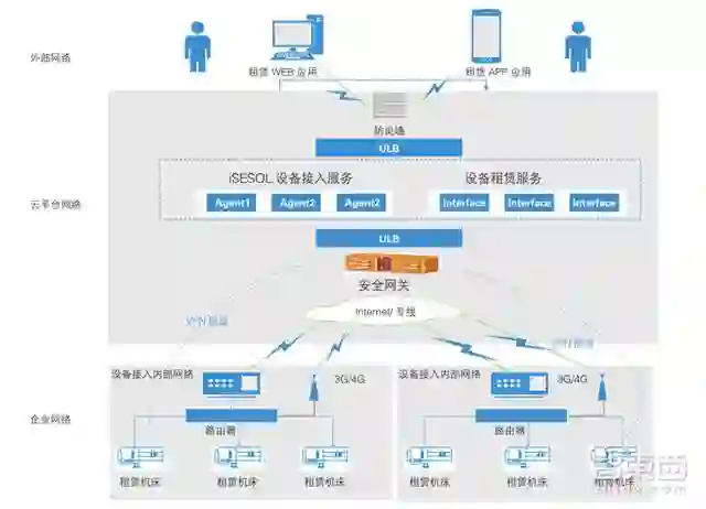 该用例来自智能云科,利用iSESOL平台,定位生产力共享。用户可以通过iSESOL平台、租赁业务后台和租赁客户端APP等工具实时监控设备运行状态、 查看设备历史运行数据以及了解设备费用详情, 同时可以依靠iSESOL平台提供的大数据智能分析工具,帮助企业实现更好的业务决策。