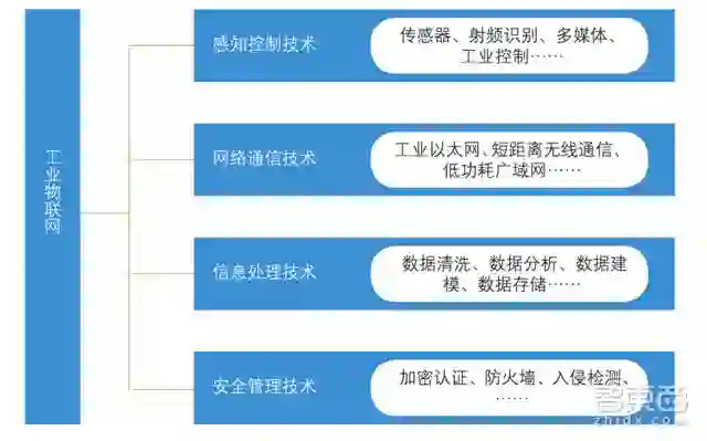 主要包括传感器(测量或感知特定物体的状态和变化,并转化为可传输、可处理、可存储的电子信号或其他形式的信息)、射频识别(非接触自动识别技术)、多媒体、工业控制(SCADA系统、DCS和PLC)等, 是工业物联网部署实施的核心;