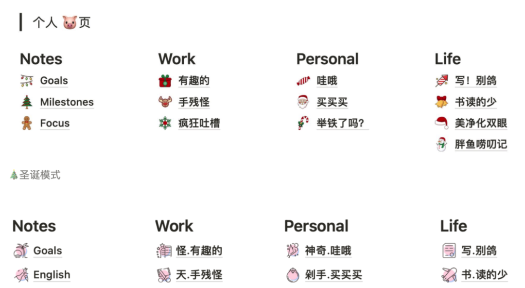 或许有的小伙伴觉得我这样太折腾,但是可能就是单纯的个人喜好。我是那种连 Notion 个人主页图标都会随节日固定更换一系列的人。