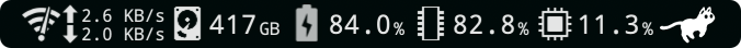 除了最直观的壁纸、A 面贴纸外,还有一个地方可以充分展示我对这台电脑的仪式感塑造,那就是状态栏。
