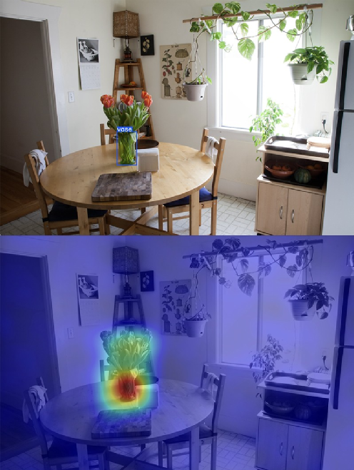 图2 显著性图示例(图中指出AI在识别花瓶时也注意到了花瓶中的花朵)