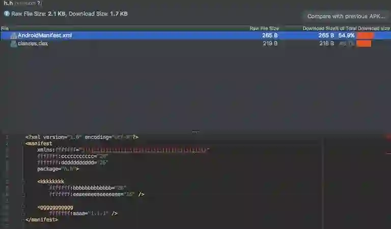 看上去AndroidManifest文件非常类似于我们的原始输入文件。唯一差别在于,文件中的字符串和 Drawable 等资源被整数资源 ID 所替代,这些 ID 以0x7F开头。