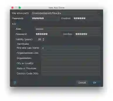 一开始,我们用 Android Studio 生成一个缺省的 App,创建密钥库(Keystore)