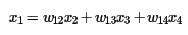 LLE首先假设数据在较小的局部是线性的,即某一个数据可以由它邻域中的几个样本来线性表示。比如我们有一个样本x1,我们在它的原始高维邻域里用K-近邻思想找到和它最近的三个样本x2,x3,x4. 然后我们假设x1可以由x2,x3,x4线性表示,即: