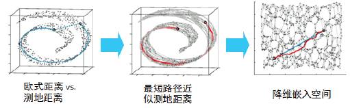 在局部保持布结构的特征,不同的保持方法对应不同的流形算法。比如等距映射(ISOMAP)算法在降维后希望保持样本之间的测地距离而不是欧式距离,因为测地距离更能反映样本之间在流形中的真实距离。