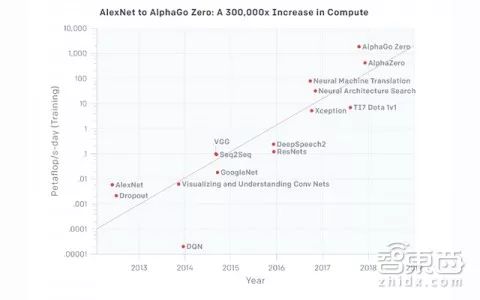 ▲几个最为人熟知的AI机器学习模型以petaflop/s-days计的计算总量,即其所需的算力