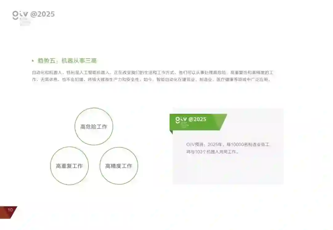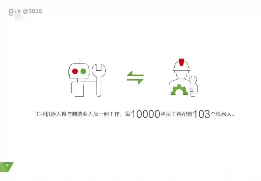 GIV预测:2025年,每万名制造业员工将与103个机器人共同工作。