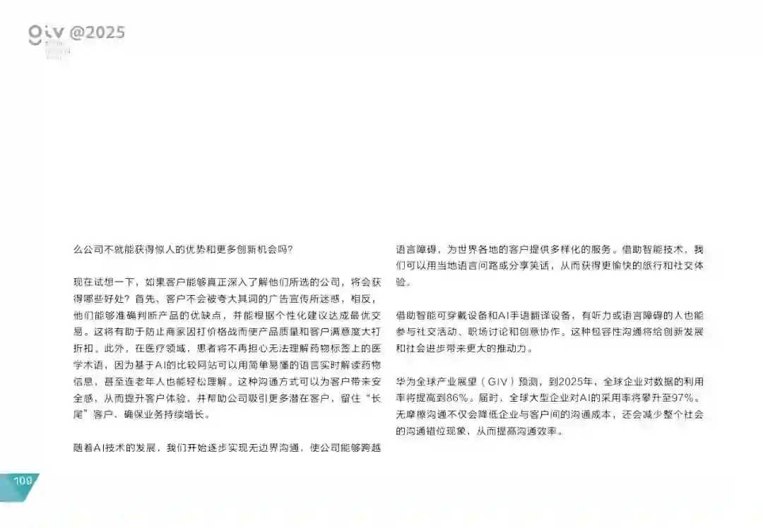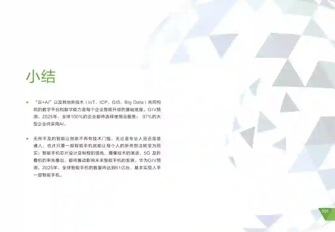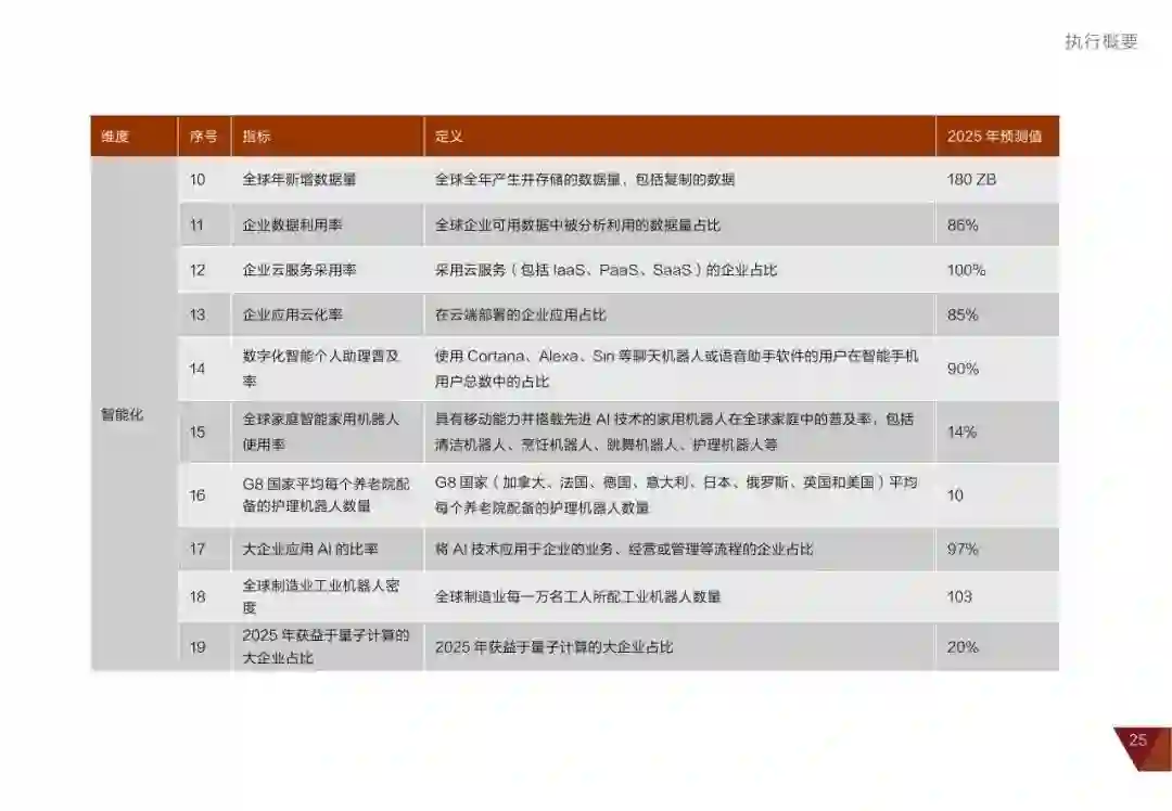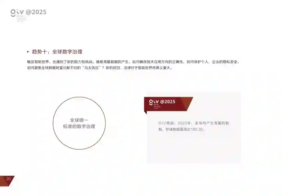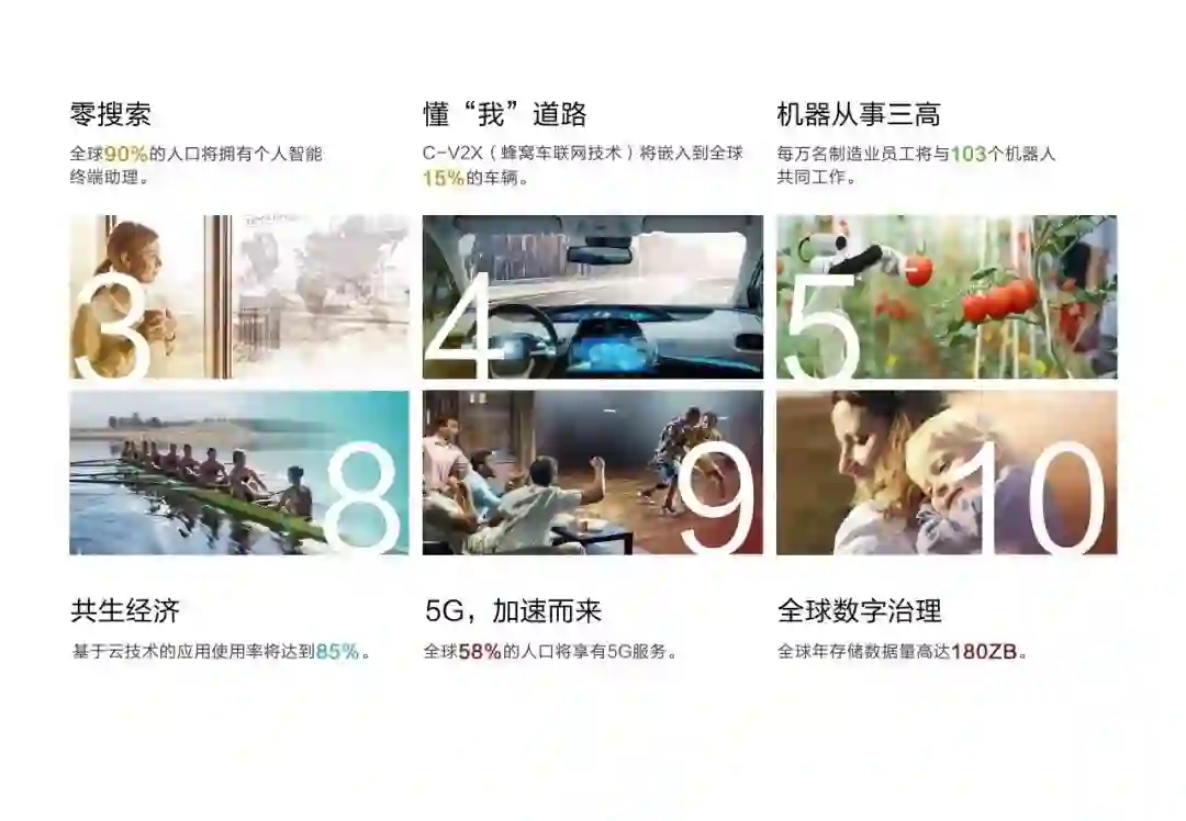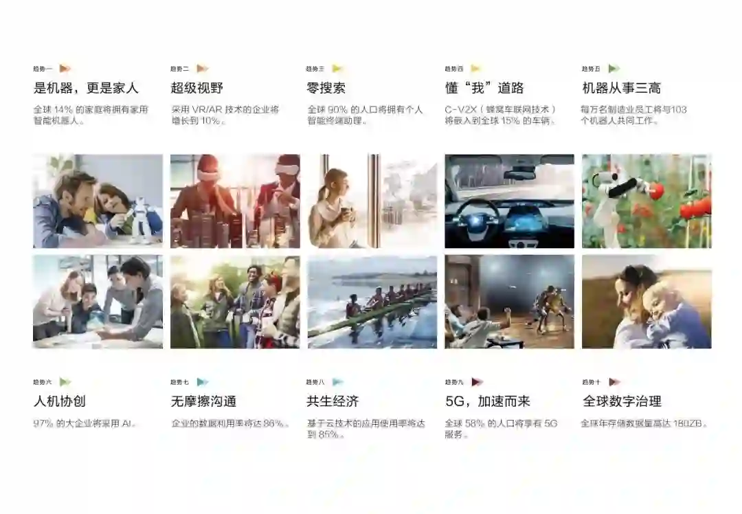 2019年,华为基于对交通、零售、金融、制造、航空等17个重点行业的案例研究,并结合定量数据预测,进一步提出了面向2025的十大趋势,它们分别是: