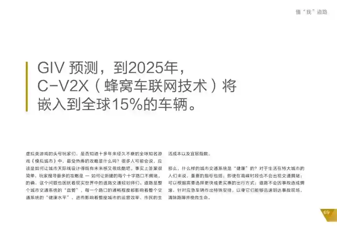 GIV预测:2025年,C-V2X(Cellular Vehicle-to-Everything)蜂窝车联网技术将嵌入到全球15%的车辆。