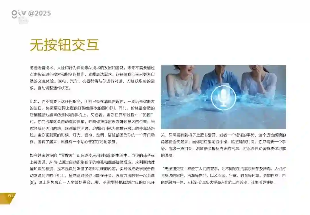 受益于人工智能及物联网技术,智能世界将简化搜索行为和搜索按钮,带给人类更为便捷的生活体验: