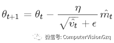 Adaptive Moment Estimation(Adam) 也是一种不同参数自适应不同学习速率方法,与Adadelta与RMSprop区别在于,它计算历史梯度衰减方式不同,不使用历史平方衰减,其衰减方式类似动量,如下: