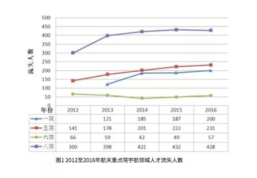 调查结果显示,2012年至2016年,航天一院、五院、六院、八院等航天科技集团主要院所,每年流出总人数呈上升趋势。例如,2016年八院流出人数达428人,远超2012年的300人。