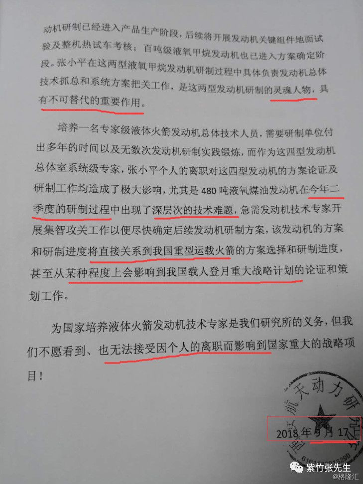 9月27日,一份盖有西安航天动力研究所公章《张小平参与我所型号研制情况》的文件引发关注,《离职能直接影响中国登月的人才,只配待在国企底层?》一文在朋友圈刷屏。