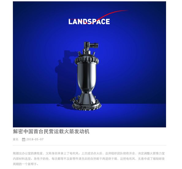 蓝箭公司在该新闻中称,该公司于2016年下半年开始组建液体发动机团队,2017年开始研发液氧甲烷发动机,2018年液体发动机其它主要组成部分——涡轮泵、阀门等关键部组件也将陆续开展试验。“每个慕名而来的新面孔,都意味着熟人的重逢。数月间,搭配默契、科班出身的液体发动机团队蔚然成型,每位工程师均拥有成功的飞行型号研发经验。”