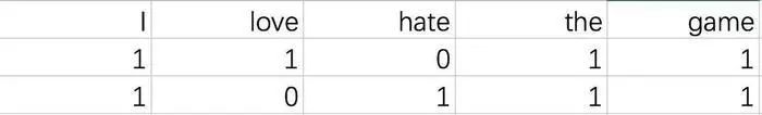 按照句子为单位,从左到右读数字,第一句表示为[1, 1, 0, 1, 1],第二句就成了[1, 0, 1, 1, 1]。