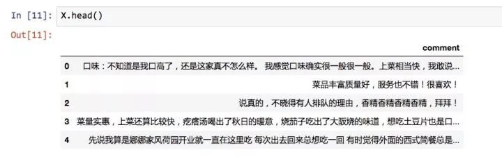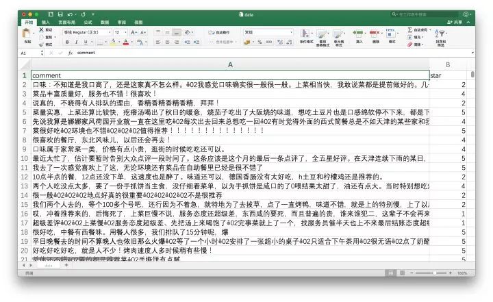 整理好之后的评论数据,如下图所示。
