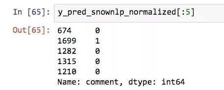看看转换后的前5条 SnowNLP 预测结果: