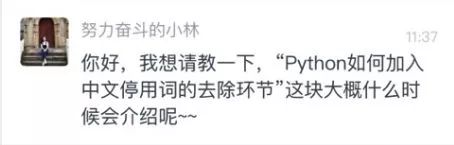 例如在原先的教程里,更新中文停用词处理部分,打个补丁。