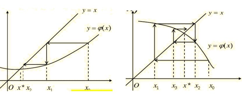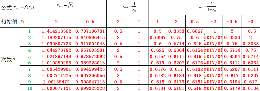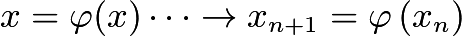 但是当迭代包含平方,根式,分式等关系时,我们仍发现结果存在发散和收敛的情况。当我们观察的函数不局限等比等差这种规范的关系时,给出任意非线性函数,以及不同的初始值,发现在某些情况下,不断迭代的结果会趋向于一个定值,而这个值我们在数值分析中称为不动点,不动点迭代(Fixed point iteration)指的是:选择适当的初始值 ,按照如下的迭代格式计算,