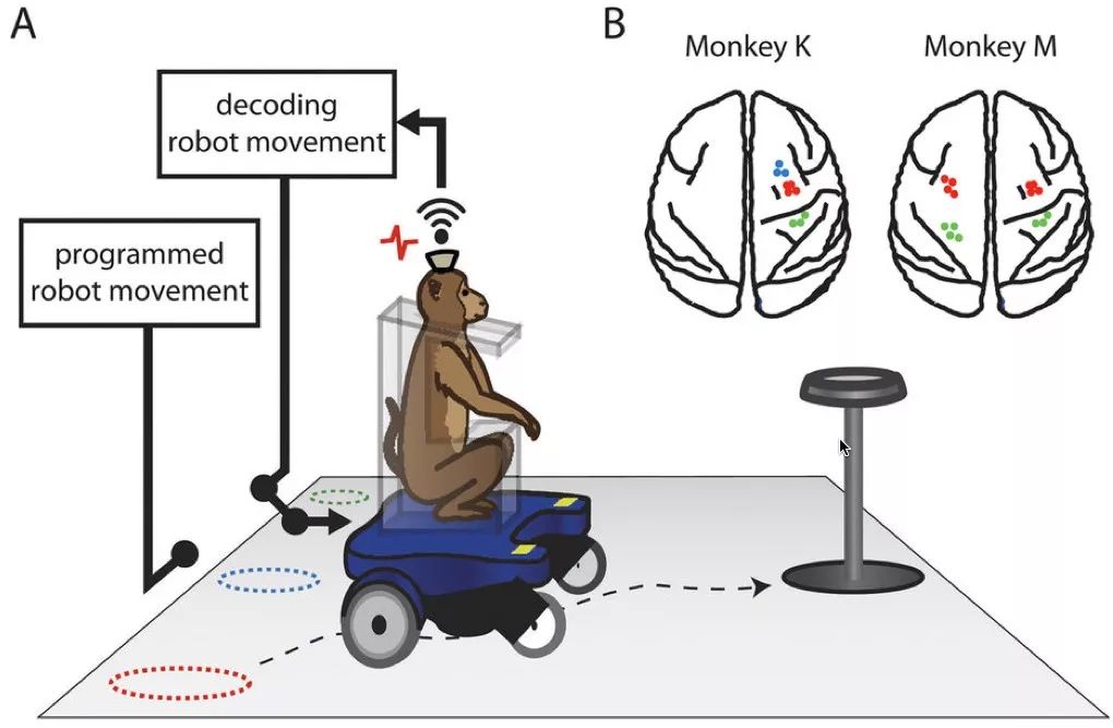 通过脑机接口控制椅子移动的猴子 图片来源:Innovation Memes
