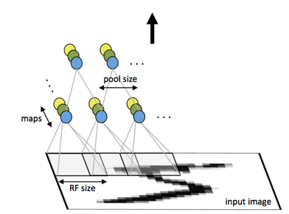 是图像输入层到隐藏层的权重和 bias 。在卷积结果之上,我们再定义一个 p*p 大小的池化区域,进行 mean 或者 max pooling 采样(一般 p 取的比较小,2-5 之间)。池化结果之后,会进入到全连接的隐藏层。