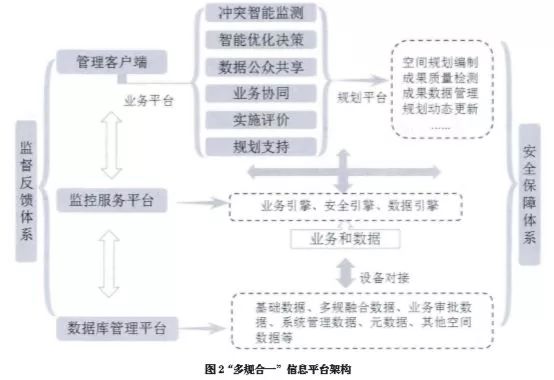 “多规合一”信息平台是“多规合一”,是一根纽带,是规划信息数据的联动枢纽。在“多规合一”工作中,对“多规”数据进行统一的管理和监测,统领各个部门信息,为各规划提供数据参考、数据管控、规划监管的功能,有助于实现跨部门规划信息和审批信息共享,并为用地划分、规划选址、重大项目的落地、规划协调等提供更为直接、直观的功能服务。城乡“多规合一”信息平台共享多规数据,实现信息联动,为实施“多规融合”实现提供了技术保障,有利于提高城市规划建设和管理的水平。