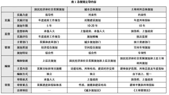 城乡规划包括城市总体规划、控制性详细规划、修建性详细规划等,其主要任务是在一定时期内,以发展规划为指导,对城市的发展战略和目标在空间布局上进行落实。土地利用规划主要是在土地使用、资源分配等方面进行协调组织,为各类专项规划土地开发、使用、保护提供依据。