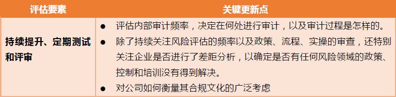 新指引增加了针对风险的合规资源分配的重要性。特别告诫不要将太多的资源投入到对特定公司来说是低风险的问题上。对于那些以风险为基础的,将注意力和资源投入到高风险交易中的有效的合规方案,检察官将给以加分项,即使它未能防止在低风险领域发生的违规行为。