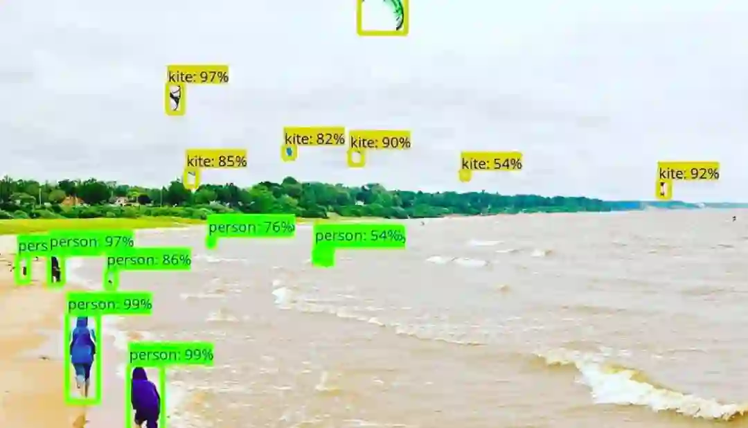 下图是描述目标检测算法如何工作的典型例子,图中的每个物体(不论是任务还是风筝),都能以一定的精确度被定位出来。
