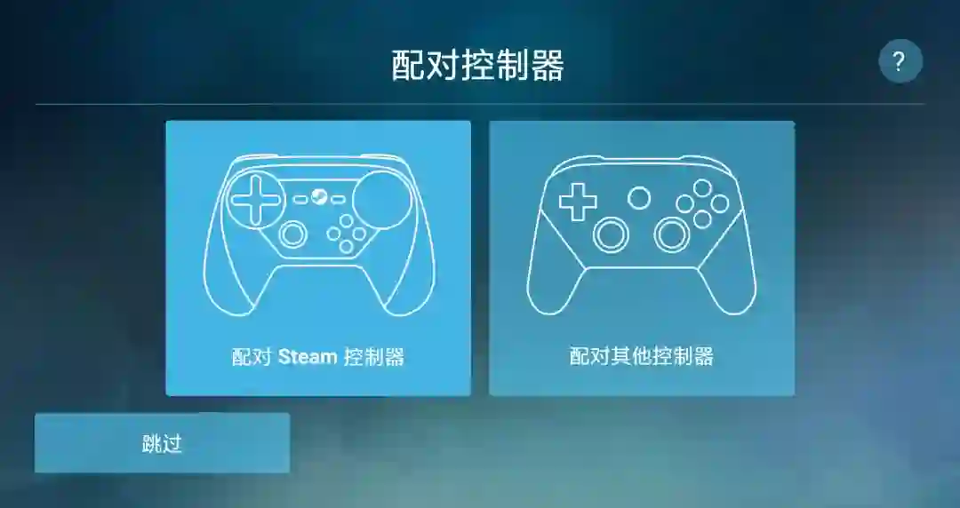 接着,应用会提示配对一个控制器,其实就是蓝牙手柄,支持 Steam 自家的和其他普通蓝牙游戏手柄。当然,如果你没有手柄的话,可以直接跳过这一步。