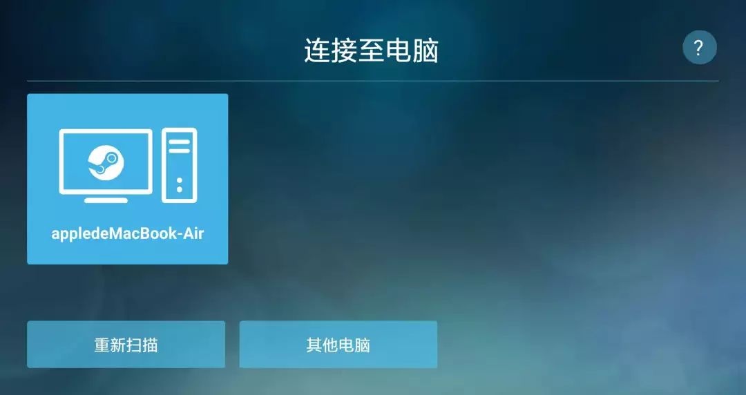 现在,如果和手机处于同一局域网的电脑上已经打开了 Steam 客户端并开启了串流功能的话,Steam Link 上此时就能看到对应的电脑图标,点击选择即可。